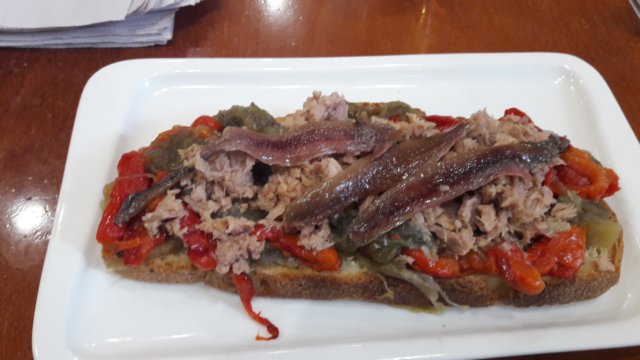 Tomate abierto con Bonito y Anchoas.