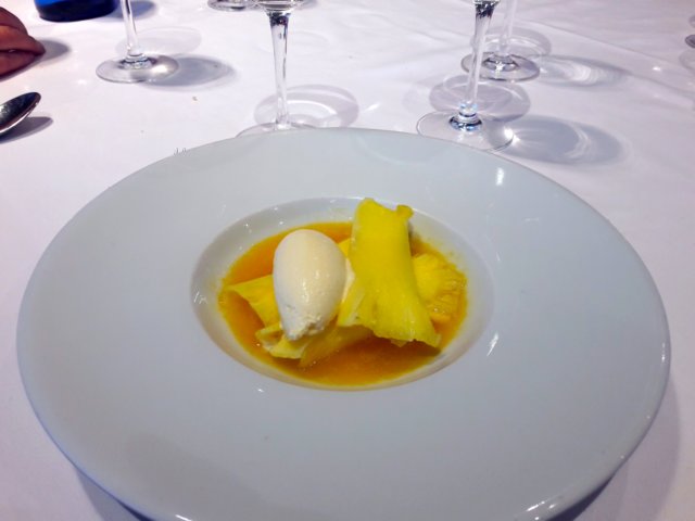 Taco de Atún a la parrilla, salsa teriyaki, puré de Brócoli crujiente y migas de Soja.