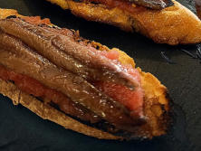 Ingredientes:1 lata de AnchoasPan de barraPara la salsa:2 cuch. de Tomate triturado1 cuch. de Kétchup1 diente de Ajo1 cuch. de Perejil picado150 gr. de aceitunas negras