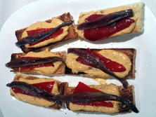 Ingredientes:1 lata de Anchoas6 Pimientos de PiquilloRodajas de panPara la salsa:2 cuch. de Encurtidos 1 cuch. de Perejil1 de Kétchup1 diente de Ajo3 cuch. MayonesaSalUna pizca de Cayena