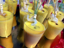 Ingredientes:1 l de zumo de Naranja colado500 gr miga de pan del día 1 diente de AjoSal160 gr aceite oliva virgen extraVinagre de Pedro Ximénez Bacalao ahumado
