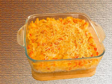 Volcar el contenido en el recipiente de hornear, espolvorear con la