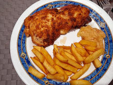 Ingredientes:2 laminas Pechugas de Pollo1 filetes de Jamón serrano2 laminas de Queso Cheddar3 cuch. Pan rallado1 cuch. de Harina1 Huevo2 cuch. Aceite de OlivaSalPimienta