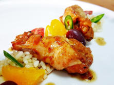 Ingredientes:16 Alitas1 Cebolla hermosa y dulceAceite de oliva virgen extra 125 ml de Vino blanco125 ml de Agua caliente60 ml de salsa de soja60 gr de azúcar moreno Ajonjolí tostado2 Naranjas