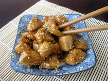 Ingredientes:500 gr de Pechuga 3 cuch. de Miel2 cuch. de Semillas de Sésamo1 cuch. de Ketchup1 cuch. de Aceite de oliva1 cuch. de salsa de SojaSal Pimienta molida25 gr de Aceite