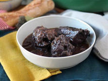 Ingredientes:1.3 kg GalloSalpimienta80 gr Mantequilla1 cda Aceite de oliva80 gr Tocino8 Cebollas pequeñas750 ml Vino1 ramillete Hierbas2 dientes de Ajo20 gr Mantequilla130 gr Champiñones1 cda Harina