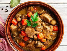 Ingredientes:800 gr. de Pechuga de Pavo 400 gr. Champiñón portobello 250 gr. Zanahorias en rodajas200 gr. Pimiento rojo 300 gr. Cebolla dulce200 gr. de Tomate triturado2 Dientes de Ajo picados1 Hoja de Laurel750 ml de caldo de PolloAceite de oliva virgen extraTomillo al gustoSal Pimienta