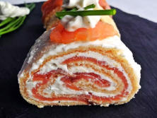 Ingredientes:1 Plancha de Bizcocho200 gr de Salmón ahumado1 Tarrina y media Queso Crema1 Cebolleta pequeñaEl zumo de 1/2 limónUnas ramas de Cebollino SalPimienta molida