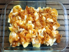 Ingredientes:4 trozos de Bacalao desalado 4 Patatas medianas cocidas3 Cebollas grandes1 diente de Ajo1 cuch. de Pimentón dulcePimienta negraAceite de oliva1 vaso de vino de Oporto