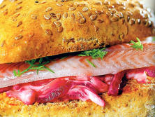 Ingredientes:6 minichapatas con semillas300 gr. Anguila ahumada 300 gr. Chucrut envasado100 gr. Remolacha cocida. 200 ml. Mayonesa1 cuch. Eneldo picado.PimientaSal