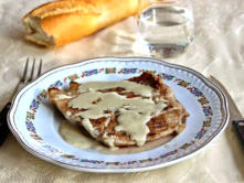Ingredientes:4 filetes de secreto ibérico100 gramos de queso azul200 ml de nata (para cocinar)25 gramos de mantequilla5 gr. maicena 1 diente de ajo Pimienta negra