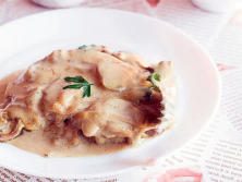 Ingredientes:10 filetes de Lomo de Cerdo200 gr. de Champiñones½ Cebolla200 ml de Nata para cocinar200 ml de caldo de PolloPimienta negraSalUn chorrito de BrandyAceite de oliva virgen extra