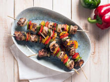 Ingredientes:300 gr Solomillo de Cerdo3 cuch. de Aceite de Oliva1 Pimiento Rojo1 Pimiento Verde1 Limón1 Naranja1 cuch de salsa de Soja30 gr de AzúcarSalPimienta