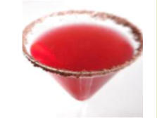 Ingredientes:¼ taza de infusión de Menta en Jarabe, y un poco más para el borde3 galletas de Chocolate, bien trituradas10 Frambuesas¼ taza de Vodka 2 cuch. de jugo de RándanoCubitos de hielo