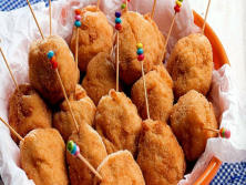 Ingredientes:200g Pollo cortado en cubitosSal al gustoPimienta al gusto3 cuch. de Mantequilla1 taza de Caldo de pollo1 taza de Harina de trigo1 taza de Crema agriaPan rallado para empanarAceite de oliva
