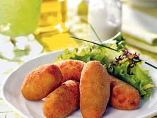Ingredientes:Bechamel para croquetas1 Cebolleta250 g. de Pollo Cocido o plancha100 g. de Pan rallado3 Huevos medianosAceite de girasolSalsa de Quesos Dip