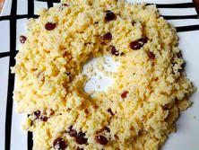 Ingredientes:450 gr. Cuscús 640 ml. de Agua Pizca de sal 60 ml. de Aceite vegetal 240 gr. de Pasas 210 gr. frutos secos picados y tostados, (por ejemplo, almendras, avellanas, nueces, piñones, pistachos)