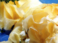 Ingredientes:12 Hojas de pasta Brick.3 Huevos.500 gr. Queso fresco de CabraUna ramitas de Cebollino125 gr. de Mantequilla3 cuch. Perejil rizado.PimientaSal
