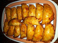 Ingredientes:1paquete masa empanadillas. 15 Gambones cocidos.3 Huevos cocidos.1 lata de anchoas, pequeña.5 Varitas de surimi.1 Huevo para pintar.4 Cuch. de salsa de tomate Pimienta.Sal