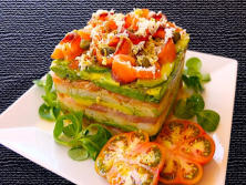 molde, aguacate y lonchas de salmón, siempre salseando ligeramente con