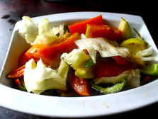 a tiritas el pimiento desechando sus semillas. Sazonamos y mezclamos