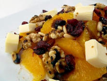 piñones y nueces tostados por encima, el queso cortado en daditos y los