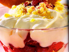 Ingredientes:600 gr. de Frutos rojos6 cuch. de Jalea de Grosella5 Terrinas de Natillas200 ml. de Nata montada50 gr. galletas de Almendras1 cuch. de Kirsch1 cuch. de Azúcar