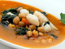 Ingredientes:250 gr. de Garbanzos250 gr. de Bacalao desalado400 gr. de Espinacas1 Cebolla2 Zanahorias150 ml. de salsa de Tomate2 dientes de Ajo1 cuch. de HarinaAceite de oliva virgen extraSal1 hoja de LaurelPerejil
