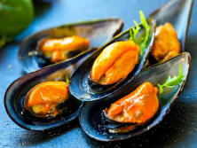 Ingredientes:1 kg. de Mejillones½ vaso de vino del Ribeiro 100 mtros de Aceite de Oliva Una pizca de sal en escamas 6 Patatas grandes1 diente de Ajo3 hojas de Laurel