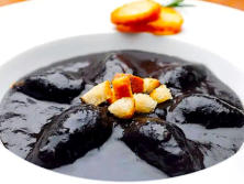 Ingredientes:1 Kg. de Chipirones2 Cebollas4 dientes de Ajos1 vaso de Vino blanco2 sobres de Tinta de CalamarRebanadas de pan2 TomatesPimienta negraAceite de olivaPerejil picado