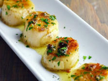 Ingredientes:8 Vieiras grandes 1 cuch. de aceite de olivaSal Pimienta al gustoPara la salsa de mantequilla2 cuch. Mantequilla sin sal2 cuch. de Perejil fresco1-2 dientes de Ajo picadosEl jugo de medio limón