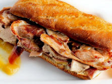 Ingredientes:2 kg. de Ternasco8 filetes de Jamón de Teruel 2 Cebollas4 dientes de Ajo1 hoja de Laurel1 cuchta Pimentón dulce100 ml. Aceite de olivaAguaSal4 Panes2 Tomates