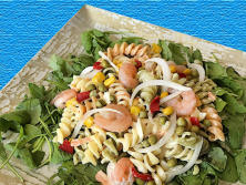 Ingredientes:250 gr de Pasta espirales.200 gr de colas de gambas Puñado de Guisantes 1 Zanahoria medianaMedia Cebolleta frescaUn puñado de maíz Un pimiento morrón Salsa mayonesa Huevo duro para decorar