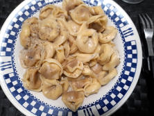 Ingredientes:500 gr Tortellini de carne3 cuch. de Queso parmesano 2 cuch. de salsa de Carne1 pomo de Mantequilla1 cuch. de Harina1 vaso de LecheSal Pimienta