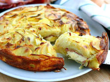 Ingredientes:1 kg de Patatas1 Cebolla200 gr. Queso para raclette 125 gr de Jamón serrano120 gr de Harina40 gr de Mantequilla150 ml de Leche3 HuevosSalPimienta
