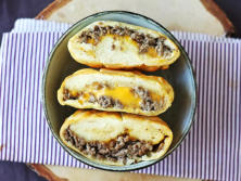 Ingredientes:1 masa de pizza (rectangular)250 gr de carne de ternera1 Cebolla picada muy fina4 lonchas de Queso Cheddar 2 cuch. de Yogur griego.Aceite de oliva virgen extra Pimienta negra al gustoSal al gusto