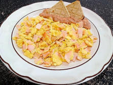 Ingredientes:2 Huevos¼ pieza de Cebolla blanca3 rebanadas de Jamón1 cubo de Mantequilla1 chorro de Aceite¼ taza de Alubias refritasSalPimienta al gustoNachos de maíz
