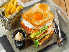 Ingredientes:10 unid. Pan de molde blanco 250 gr. Pollo 100 gr Tocino o Bacon frito20 gr. Jamón York100 gr. Queso edam100 gr. Lechuga1 Huevo frito150 gr. Tomates en rodajasMayonesa al Ajo Hellmann´s