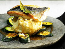Ingredientes:4 Lomos de Lubina4 Patatas1 Calabacín grande2 cuch. de Mantequilla1 chorrito de Leche2 dientes de AjoSalAceite de oliva virgen extraPimienta negra