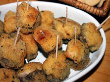 Ingredientes:1 bandeja de Champiñones2 cuch. de Harina1 chorrito de Aceite de oliva500 ml de LecheSal 1 pizca Nuez moscada2 puñados de Gambas1 o 2 HuevosPan rallado