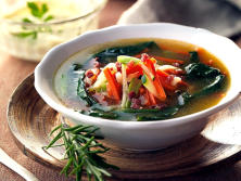 Ingredientes:6 Cebollas grandes6 Tomates pelados2-3 tallos grandes Apio fresco2 Pimientos verdes grandes1 Repollo o 1 Col pequeña.½ Nabo (opcional)Sal Pimienta en granoJengibre fresco.Agua mineral