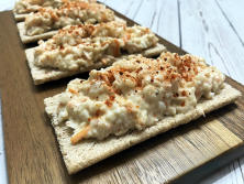 Ingredientes:2 Huevos150 gr de Cebolleta250 gr de palitos de Cangrejo2 latas de Atún en aceite 25 gr de Vinagre200 gr de Mayonesa Tostas de pan Pimentón dulce