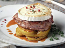Ingredientes:2 ManzanasHarina de maíz4 rodajas de Queso de Cabra1 dl. de vino de OportoAzúcarSal en escamasAceiteMantequillaCanela1 dl. de caldo de Carne