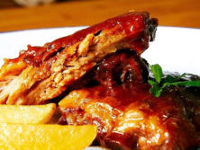 Ingredientes:1 Kg. de Costillas de Vacuno.1 Frasco salsa Barbacoa50 ml. de salsa Picante2 cuch. de Miel El zumo de 2 Limas1 cuch. Hierbas Provenzales2 Cebollas moradas1 Pimiento verdeSal