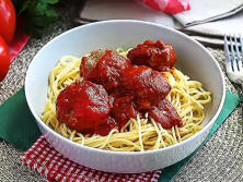 Ingredientes:55 ml Leche1 cda Pan rallado200 gr de Ternera picada50 gr de Cerdo picado1 Huevo1 diente de ajo25 gr Parmesano1 cdita Sal9 bolitas de Mozzarella frescaAceite de oliva200 gr salsa de TomateEspaguetis