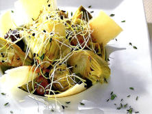 Ingredientes:1 Tarro de Alcachofas100 gr. Queso Parmesano1 caja Brotes de Ajo50 gr. Aceitunas verdes50 gr. Aceitunas negras1 cuch. Vinagre Balsámico5 cuch. Aceite de OlivaUnas gotas de zumo LimónSal Pimienta