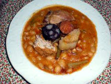 Ingredientes:250 gr de Garbanzos250 gr de Alubias,200 gr. Pancas de Acelgas2 dientes de Ajo3 Chorizos para guiso1-2 Morcillas serrana 100 gr de Papada de cerdo300 gr de Carne de cerdo, SalPimentónManteca colorá (opcional)