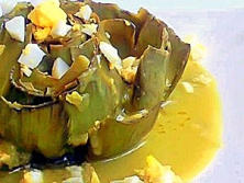 Ingredientes:AlcachofasUna Cebolla pequeña4 ó 5 dientes de Ajo½ vaso de JerezCaldo de verduras 1 cuch rasa de CurryLimónAceite de olivaSal Pimienta1 Huevo cocido1 cuchta de Harina de Maíz