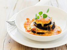 Ingredientes:2 Berenjena200 gr. Salsa de tomate100 gr. Queso Parmesano 300 gr. Queso Mozzarella fresco1 Huevos25 ml. Aceite de oliva virgen 10 ml. LecheSalPimienta al gustoAlbahaca fresca (opcional)Sal gruesa