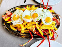 Huevos rotos sobre Langosta.